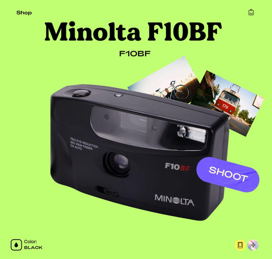📸 Minolta F10BF 35mm Point & Shoot Film CameraThe Minolta F10BF is a stylish, lightweight...