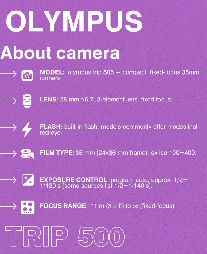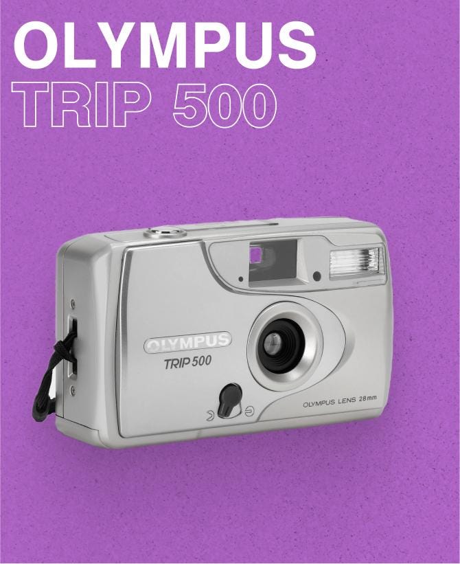 Olympus Trip 500 — 35mm Point-and-Shoot Film Camera, Focus-Free Lens, Built-In Flash, Tested